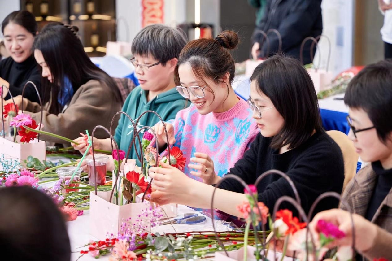 此次活動結(jié)合盛和公司房地產(chǎn)行業(yè)特點,將活動與樓盤推廣相結(jié)合。地點設(shè)在盛和公司與融創(chuàng)公司合作的平潮“潮啟未來”項目。活動邀請了花藝老師,給大家講授選花、裁剪、顏色搭配、造型等方面的插花技巧。一枝枝鮮花鋪在桌面上,大家在花藝師的指導下,進行嘗試和實踐。在一修一剪之間,桌上一盆盆細致精美、別出心裁的插花作品逐漸誕生。插花結(jié)束后,又舉辦了分享樓盤推廣點贊活動,將樓盤推廣信息在朋友圈內(nèi)進行展示,在15分鐘內(nèi)點贊最高6名女職工還可以得到特殊的獎勵。大家踴躍參加,發(fā)動親朋好友推廣點贊,活動現(xiàn)場歡聲笑語,你追我趕,進行了激烈的PK。